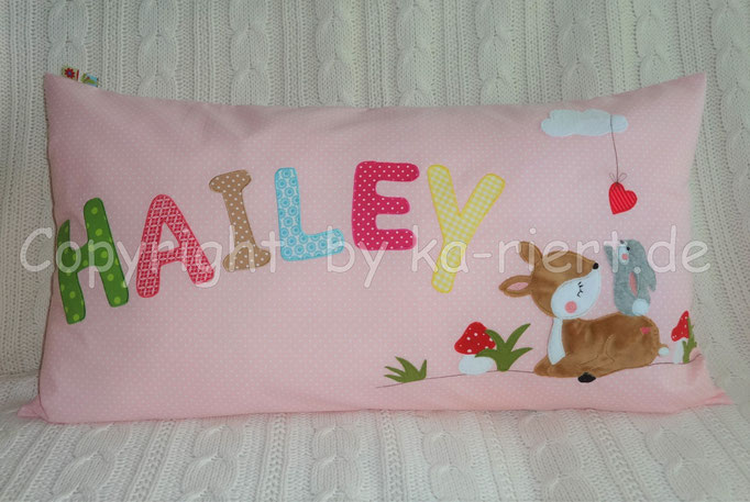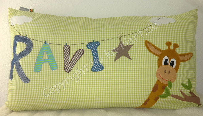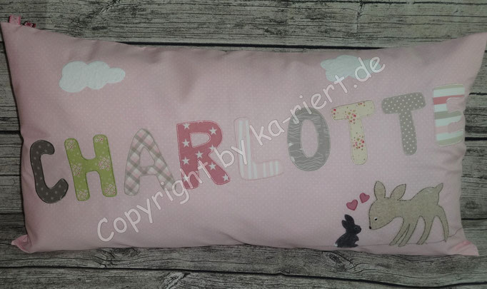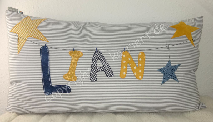* "fehlende" Buchstaben werden mit angehängtem Stern/ Herz o.ä. ausgeglichen ( zus. Applikationen sind immer optional siehe Linn Kissen )